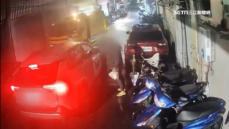 監視器畫面拍下,垃圾車已經停妥準備清運,但巷弄裡卻還有一台多元計程車,雙方卡在路中間,幾乎動彈不得。