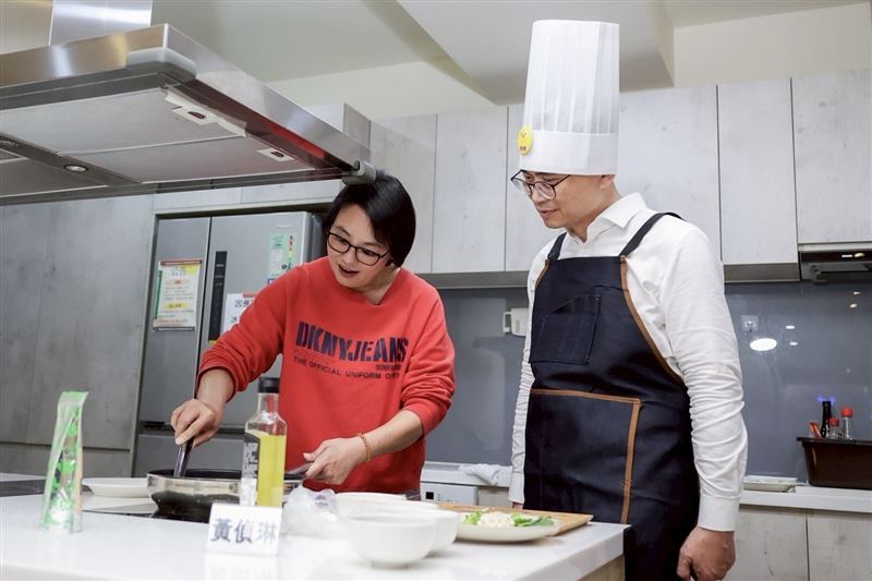 同樣來自第四選區的黃偵琳,選擇的是「照燒金針菇肉捲」。黃偵琳分享,自己身為職業婦女二十多年,下班時間較晚,但仍希望能親手煮一頓營養又快速的料理給家人。黃偵琳說,簡單的菜色也能很有溫度,正如她帶著「媽媽的心」,一步一腳印爭取為市民服務的機會。料理過程香氣四溢,讓現場人員直呼「好香、好餓」。