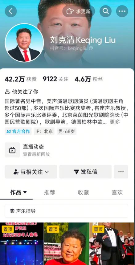 中國著名旅歐男中音歌唱家劉克清,擁有一副好歌喉,卻因為一張「天生違規」的臉孔,在中國網路世界寸步難行。近日傳出他的抖音帳號終於通過官方審核,解除了長期的頭像限制。然而,當劉克清上傳最新頭貼後,網路社群瞬間炸鍋,原因無他,只因為這張照片實在「太像了」。