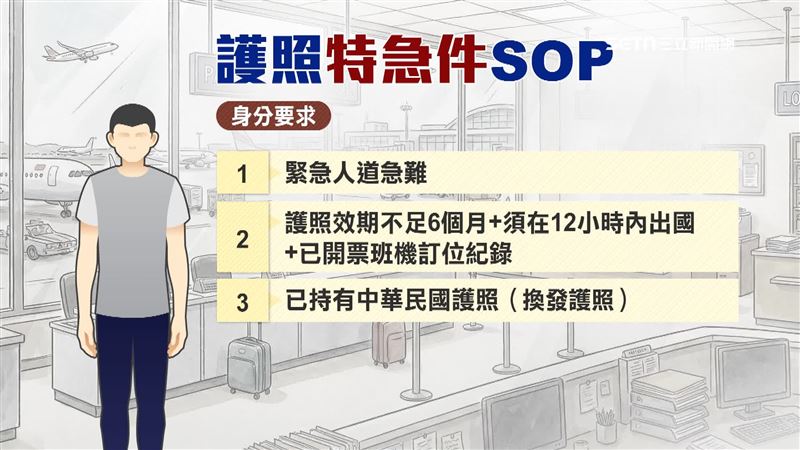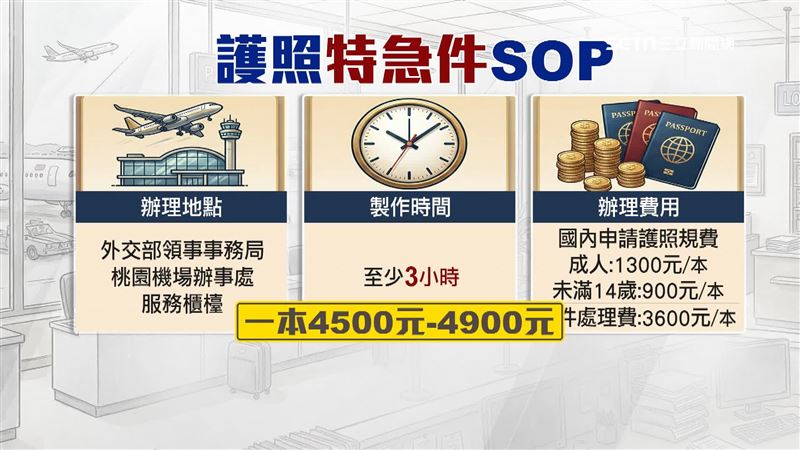 面對護照緊急狀況,地勤們有套SOP,但不是每種身分都能適用,像是符合緊急人道狀況,或是護照效期不足6個月,但須在12小時內出國,已經訂好機票,全台也只限桃機可以現場辦理,除了製作需要至少3小時,還要加上3600元的速件處理費,一本就要價4900元。
