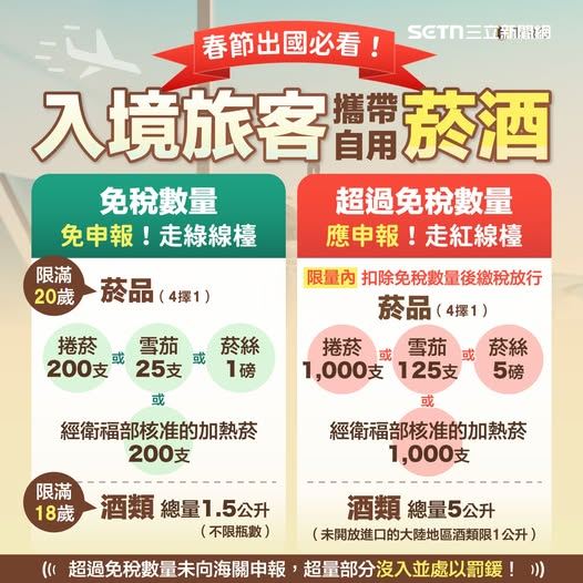台灣新聞通訊社-春節回國別亂帶菸酒!超過這數量被抓到 罰鍰罰讓你心痛流淚