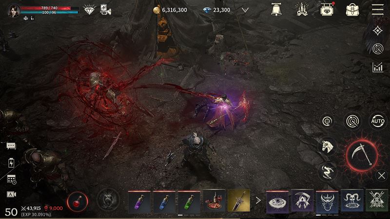 本次有幸受到邀請進行搶先試玩體驗,用玩家的角度最直觀的感受本作的戰鬥節奏與視覺表現魅力。首先本作提供四大職業供選擇,其中「死神」以近距離高爆發與隱身瞬間移動核心,以鐮刀為武器統治戰場;「狂屠」擅長遠程傷害與瞬間輸出,能精準打擊敵方收割目標;「毒蛇」主打遠程法術與召喚獸的輸出,透過猛毒與召喚法術牽制戰局;「血痕」則兼顧輸出與防禦能力,能穩定站在前線承擔任隊伍的領頭,在近距離主宰戰場。每個職業各自涵蓋不同戰鬥風格與戰場定位,能充分滿足不同玩家的戰鬥需求。