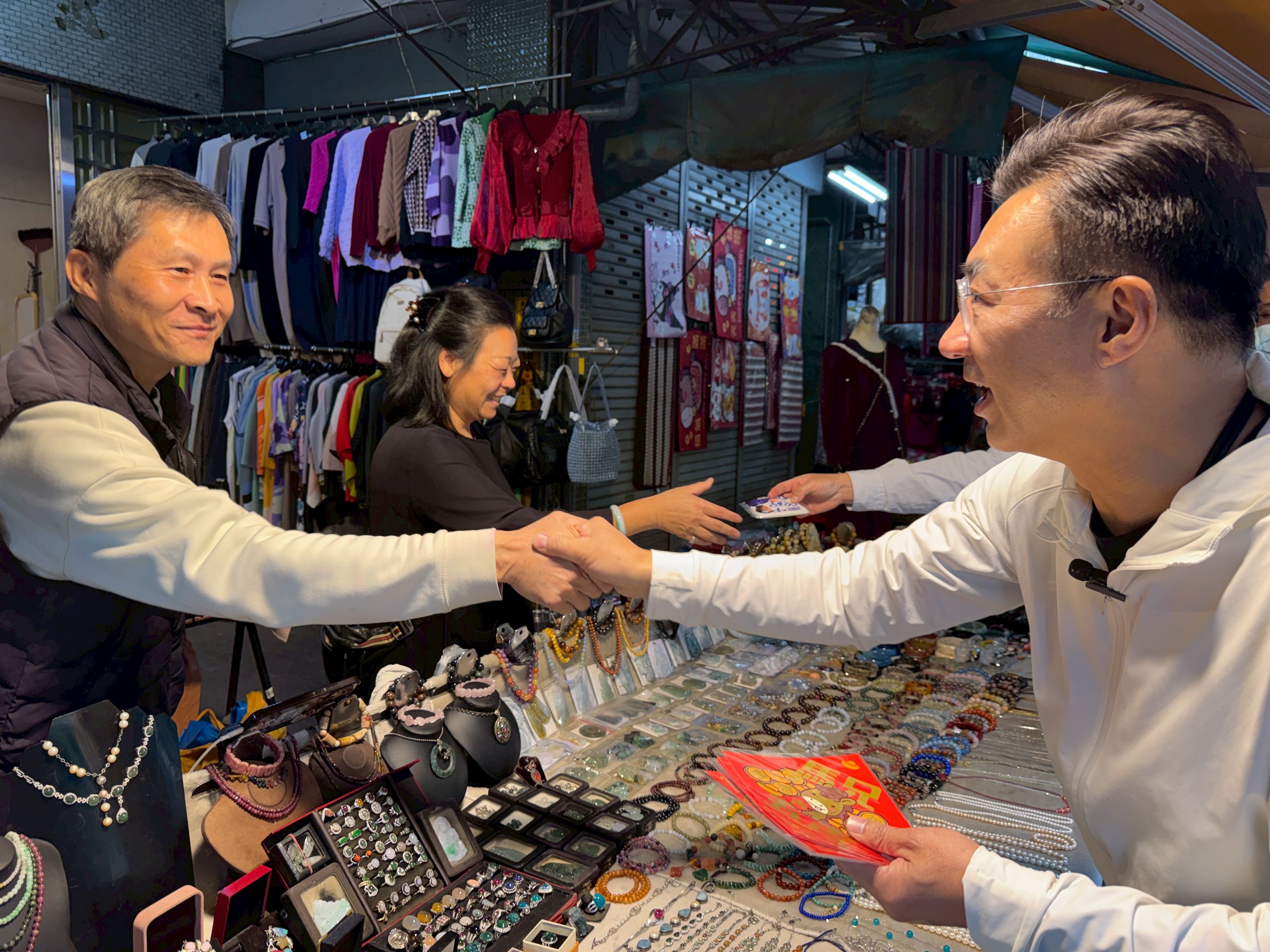 立法院副院長江啟臣今天到后里市場送春聯,拜票。圖/江啟臣服務處提供