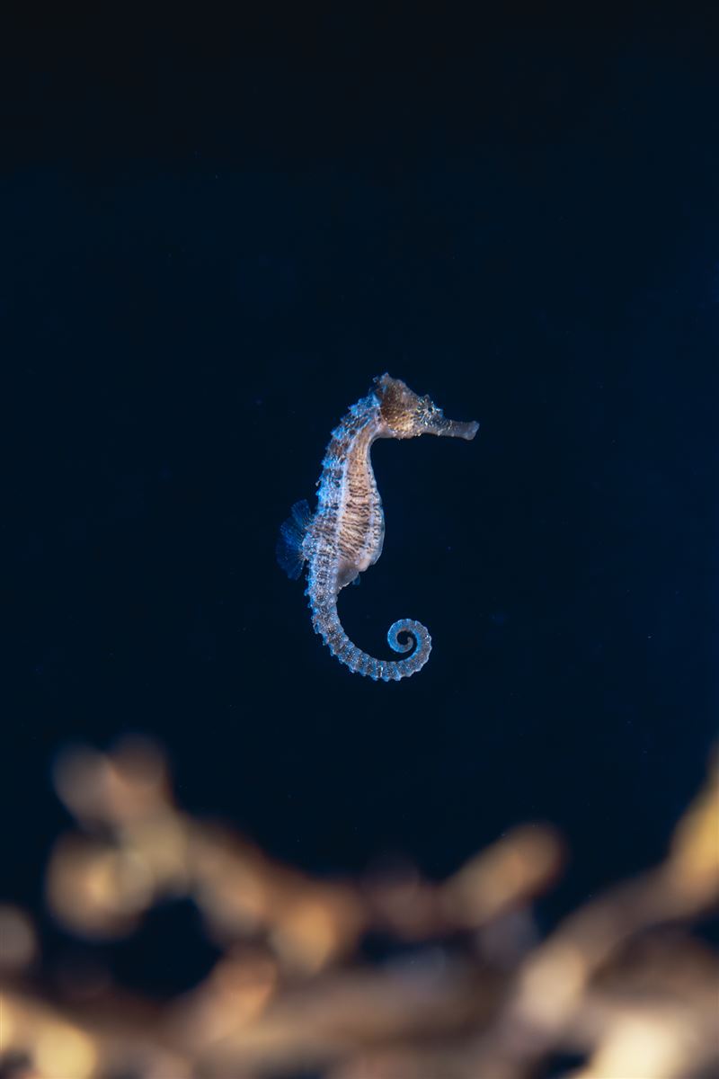 「海馬到底是魚還是馬?」這是普羅大眾對海馬最常見的疑問。其實,海馬是貨真價實的硬骨魚類,但演化出了海洋中最獨特的「叛逆」構造:打破魚類橫游慣例的「直立泳姿」、像猴子般靈活能捲住海草固定的「捲曲尾部」,以及自然界罕見的「雄性育兒」機制。透過展覽,民眾將能親眼見證雄性海馬與雌性海馬的外型差異以及特殊的育兒袋構造,更能了解海馬的特殊習性。這不只是生物界的奇蹟,更是寒假期間最震撼的生命教育,讓孩子們從趣味學習中認識這群深海裡的超級生物。