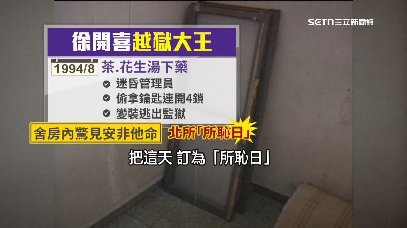 曾經犯下多起強盜案的徐開喜被稱為「珠寶大盜」,幾乎大半個人生都在獄中度過,近年來轉型成網紅,日前曾接受三立獨家專訪,分享逃獄過程。不過他最為人熟知的是在1994年,以藥物迷昏管理員逃獄,事後北所更將當天訂為「所恥日」。