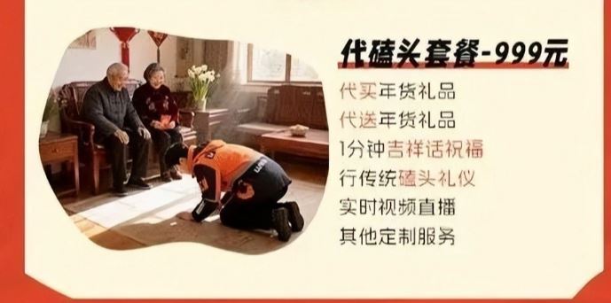 2026年農曆春節將至,一種名為「代客磕頭」的新興服務引爆網路熱議!有即時配送平台推出要價999元人民幣(約台幣4500元)的「春節代拜年」套餐,標榜專人上門送禮、甚至「磕三個響頭」,讓不少網友看傻眼。這究竟是數位時代的「雲端孝道」還是商業鬧劇?隨著輿論炸鍋,平台已火速下架爭議項目,但關於現代人盡孝的討論才正要開始。