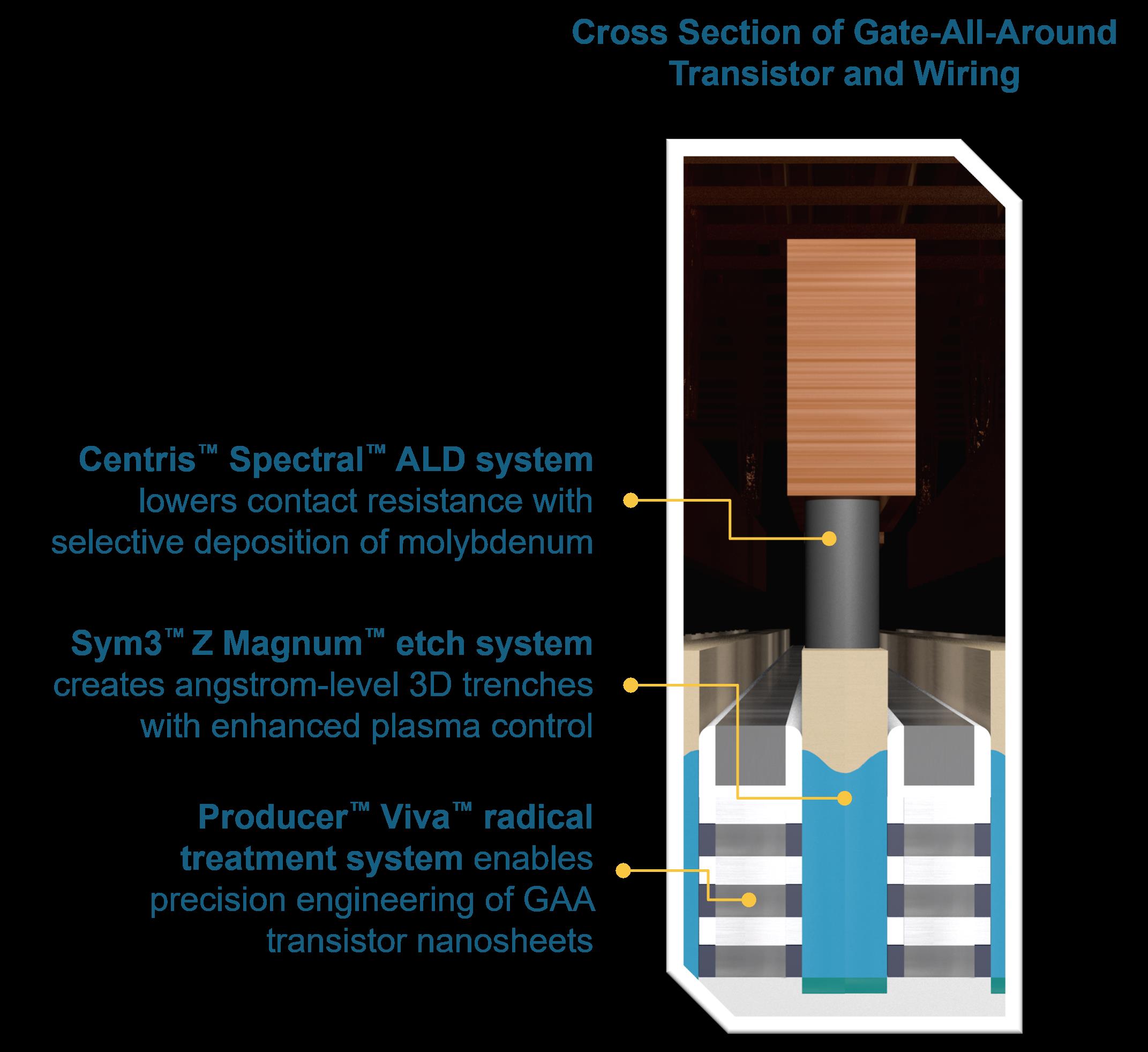 應材公司發布環繞式閘極(GAA)電晶體與布線創新技術示意圖。圖/應材提供