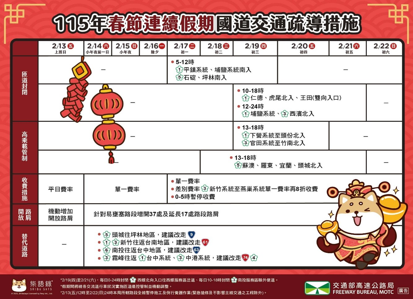 春節連假交通疏導措施。圖/高公局提供