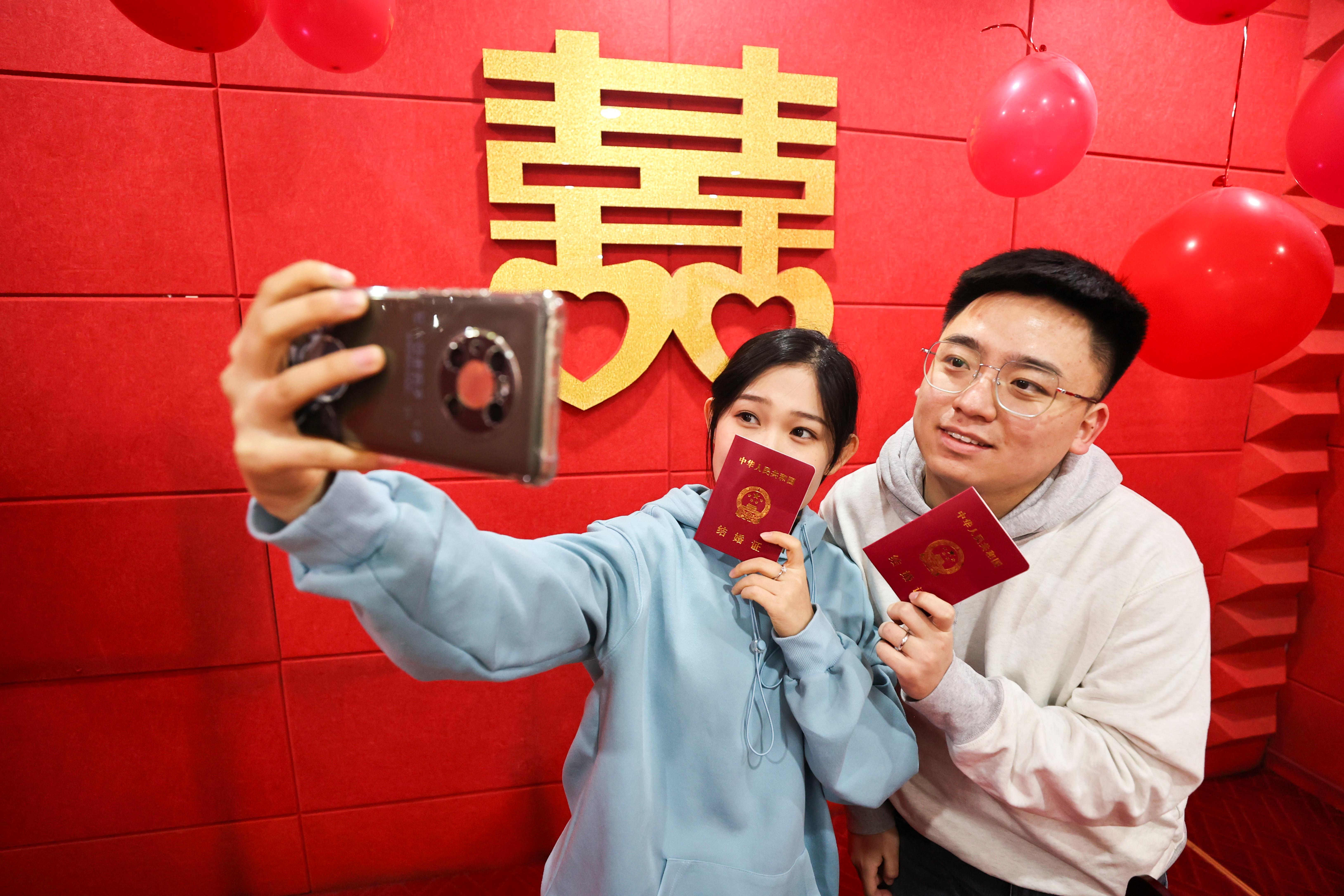 據大陸民政部公布數據,2025年大陸全國結婚登記676.3萬對,比2024年增長10.76%。(中通社)