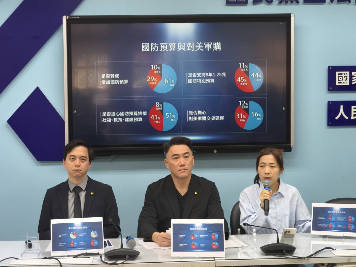 國民黨立委牛煦庭委託TVBS民調中心,進行賴政府施政表現及兩岸、國防議題民調,今在國民黨立院黨團書記長林沛祥、立委徐巧芯陪同下公布結果。根據該民調,就近期備受關注的1.25兆元軍購特別預算,支持與不支持呈現兩極;56%受訪者擔心美國軍售延宕交貨;49%受訪者憂美國總統川普出賣台灣,50%受訪者不相信美國會出兵協防台灣。