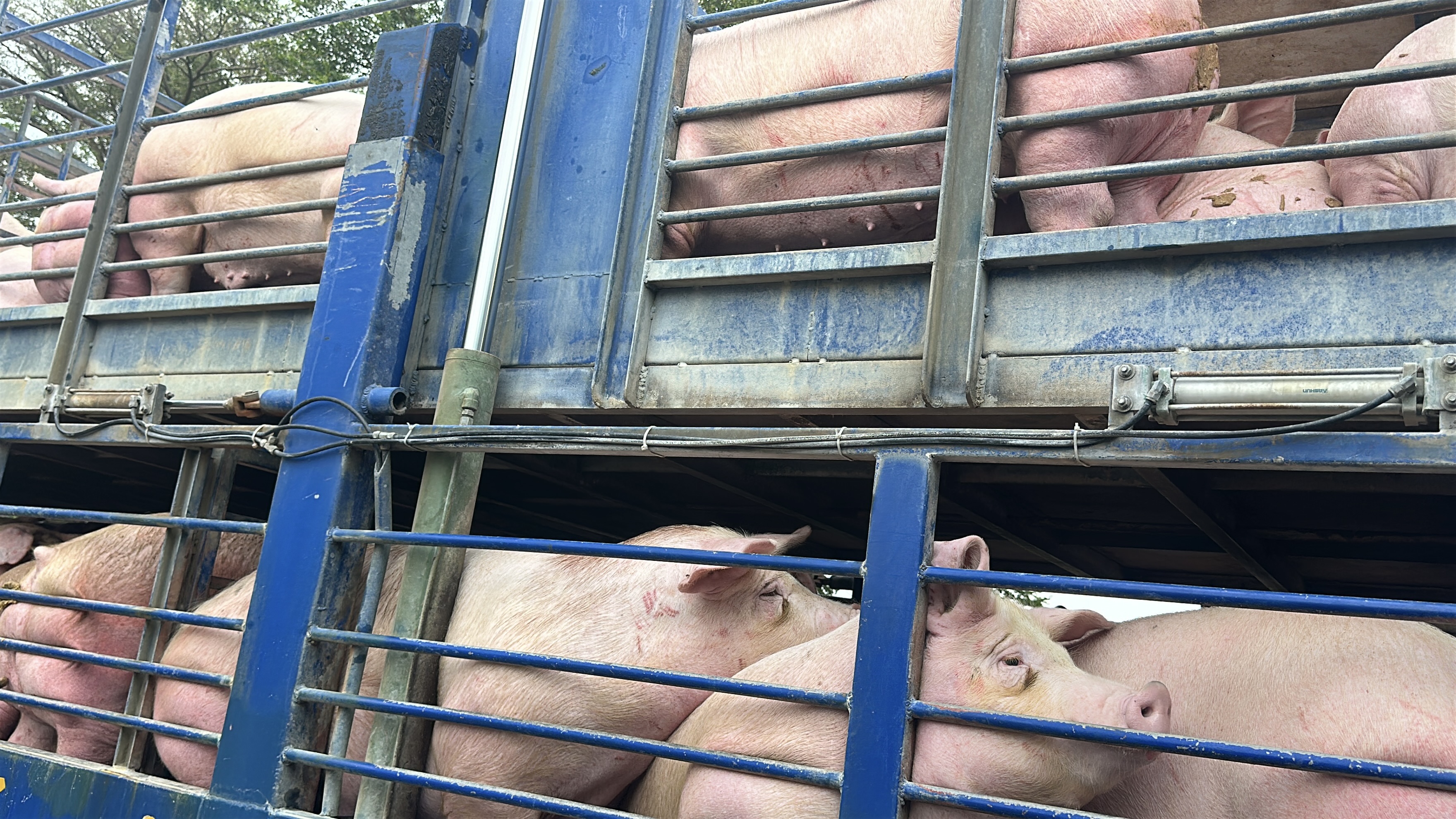 中華民國養豬協會理事長潘連周對台灣豬肉很有信心,只要政府產地標示清楚,都不用怕,圖為運送豬隻。記者劉星君/攝影
