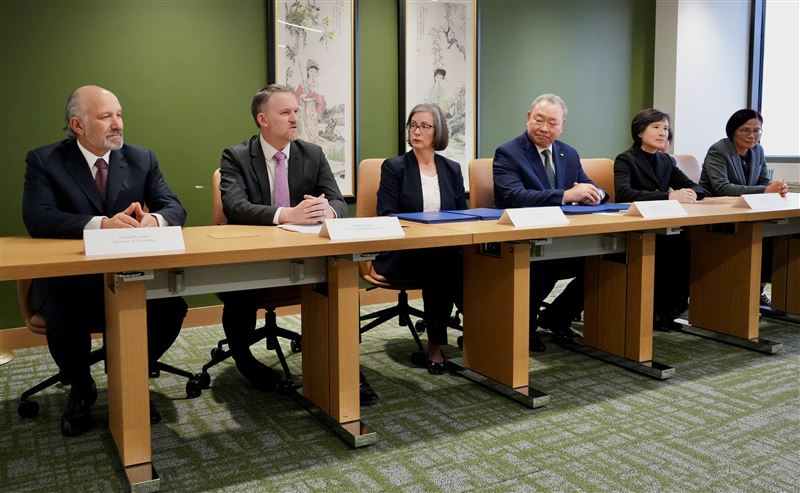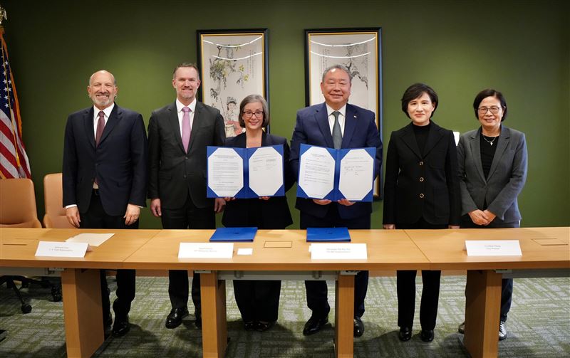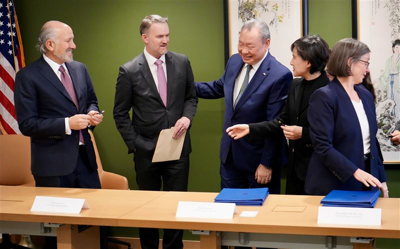 行政院副院長鄭麗君10日率團赴美,13日清晨與美方談判團隊就台美對等貿易協定達成共識並完成簽署。美國駐中使領館也在社群平台X曬出台美雙方在簽署儀式露出燦爛笑容的照片大讚:「這項開創性的協議增強了我們供應鏈的韌性,並為美國農民、牧場主和製造商在亞洲創造了更多機會。」