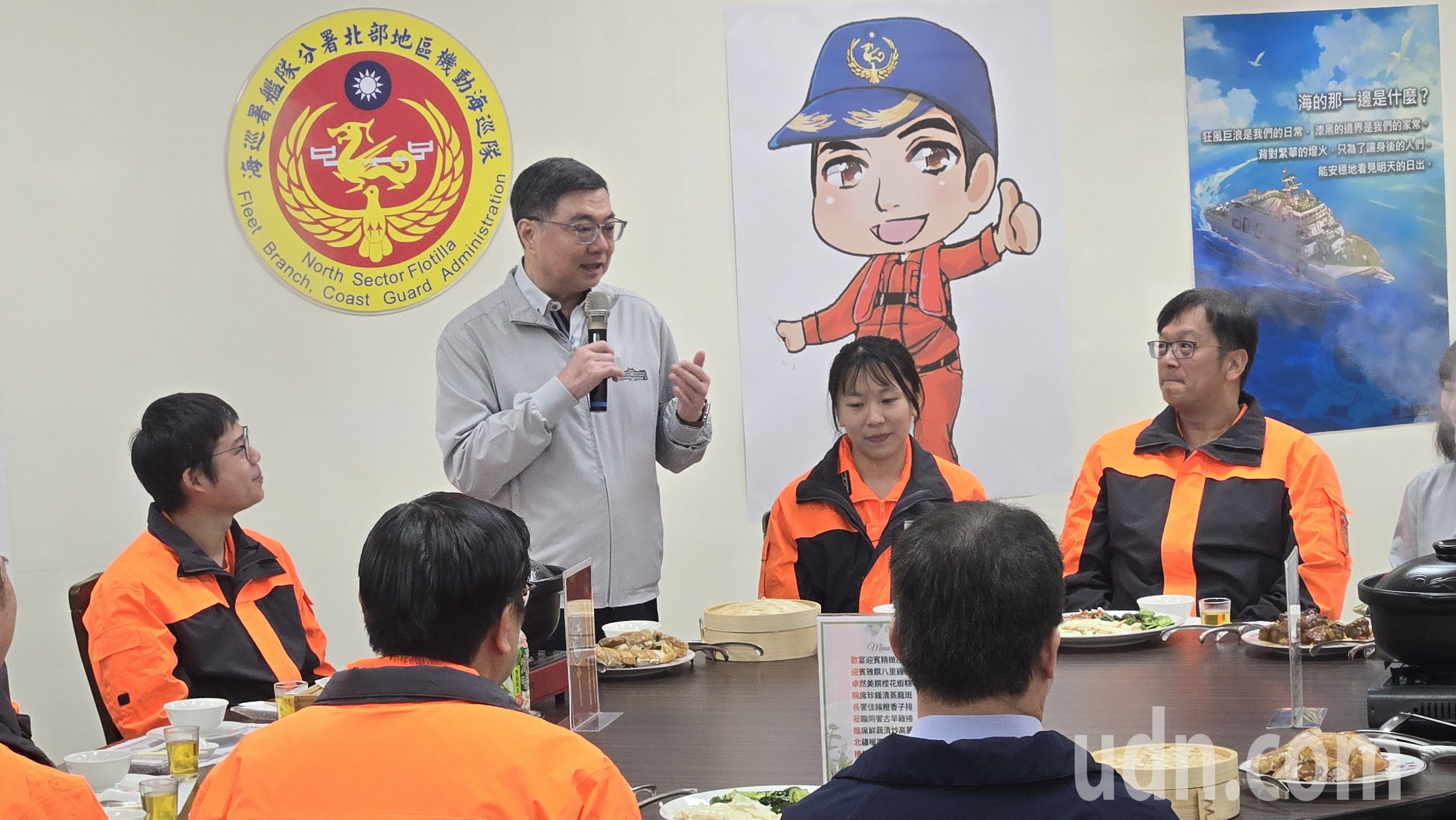 今天是春節連假第一天,卓院長一早先後到消防署救災救護指揮中心、高速公路局北區交通控制中心,近午抵達海巡署艦隊分署北機隊慰問春節留守值勤人員,並與基層隊員共進午餐。