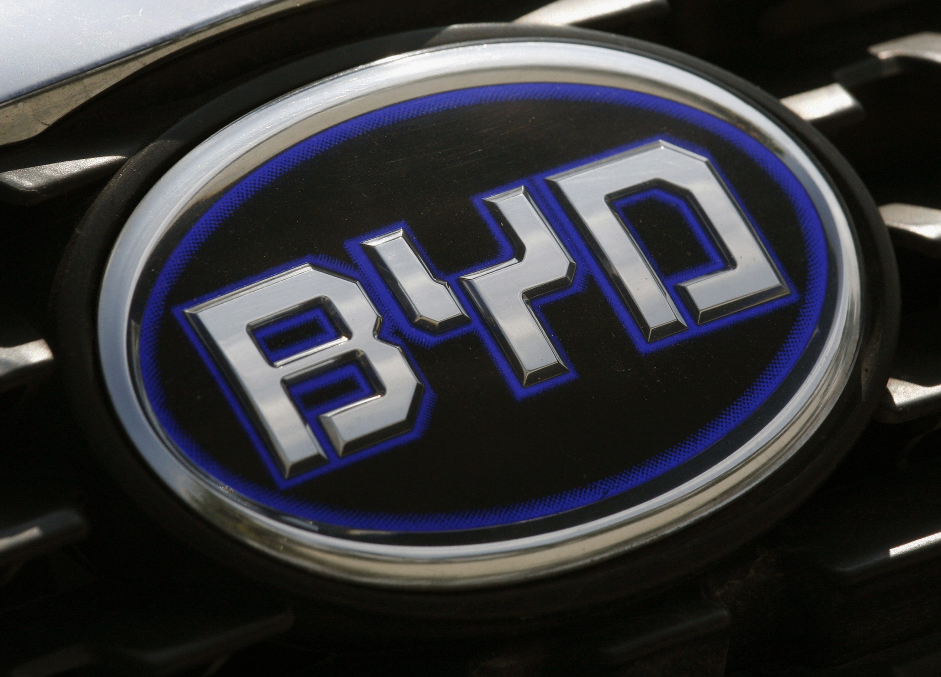 比亞迪和吉利汽車,入圍競購日產墨西哥工廠終選名單。圖為電動車製造商比亞迪(BYD)LOGO。(路透)