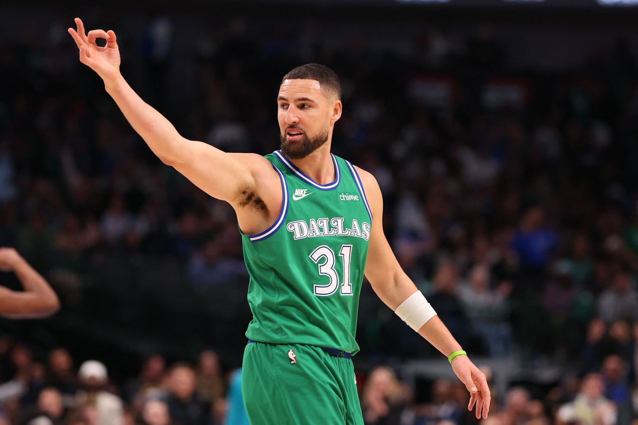 DALLAS, TEXAS – JANUARY 29: Klay Thompson #31 of the Dallas Mavericks reacts during the fourth quarter of the game against the Charlotte Hornets at American Airlines Center on January 29, 2026 in Dallas, Texas. NOTE TO USER: User expressly acknowledges and agrees that, by downloading and or using this photograph, user is consenting to the terms and conditions of the Getty Images License Agreement. Sam Hodde/Getty Images/AFP (Photo by Sam Hodde / GETTY IMAGES NORTH AMERICA / Getty Images via AFP) 法國新聞社