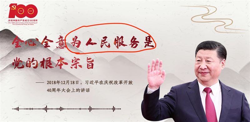 Kolas Yotaka指出,這個大大的標語出現在北京的新華門牌匾上(中共中央與國務院辦公大樓),出現在中共各級黨政機關門口、大廳、最顯眼的地方,更別說習近平在重大的黨慶、國慶、閱兵時也常把「為人民服務」掛在嘴邊。另一邊,在台灣,2007年高金素梅「為人民服務」的新聞稿至今還掛在立法院官網,2024年高金素梅競選連任,選舉公報上的政見就是「為人民服務」。臉書po自稱「為人民服務」的團隊,hashtag也不缺「為人民服務」。