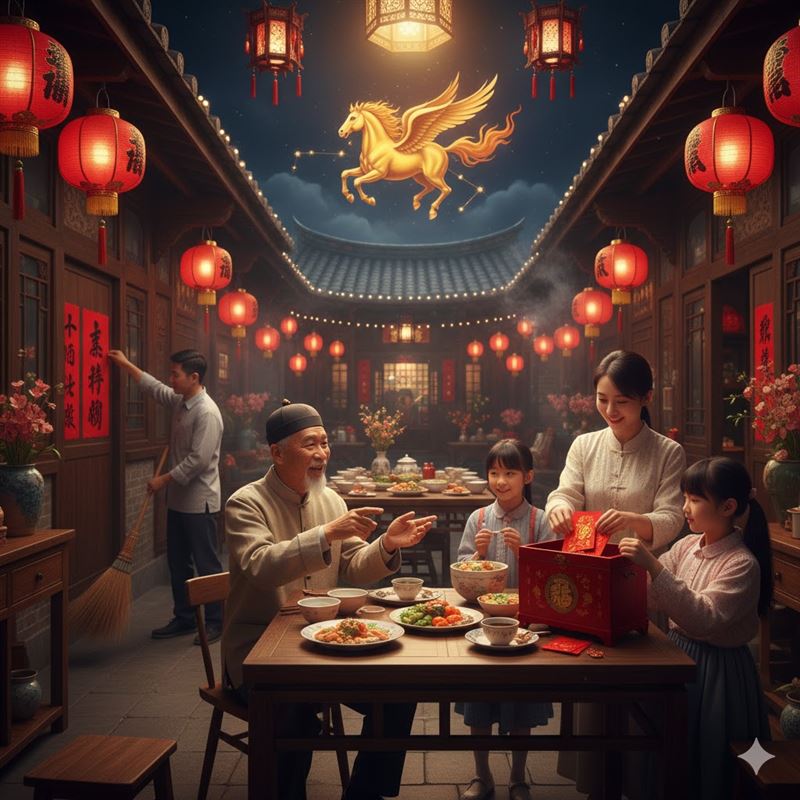 2. 壓歲錢的預備儀式:許多家長會在小年夜這天,將準備發放的壓歲錢放入全新的紅包袋中,並置於家中神明廳或乾淨的財位處「吸取靈氣」。在馬年,這種預熱財運的行為,寓意著財富能像駿馬般充滿生命力,不僅要進門,更要「跑」得長遠。