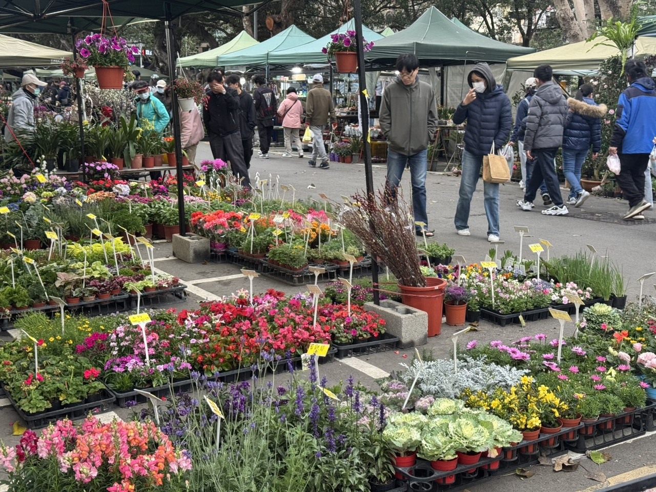 位於新竹市立田徑場旁的新竹假日花市湧現採買人潮,各式應景盆栽將花市妝點成繽紛的藝廊,民眾紛紛走入攤位,尋覓象徵吉祥開運的植栽,期盼為家中增添喜氣。中央社