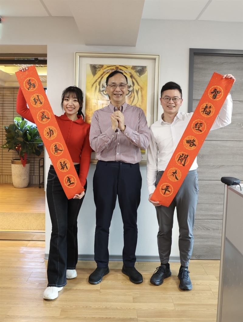 朱立倫說,「躍馬新生」象徵的是馬年奔騰、跳躍的活力,希望新年大家都有嶄新的生命力。揮毫過程中,朱立倫提筆前用手指順了筆劃後迅速完成,而在一旁的台北市松山信義議員參選人楊智伃也練習提筆寫下「馬到成功」,以往嚴格的「總教練」朱立倫,今年給予滿滿情緒價值,不僅稱讚好看,還說「大家願意寫就好」,讓楊智伃鬆一口氣,直呼「老師今年過年很寬容!」