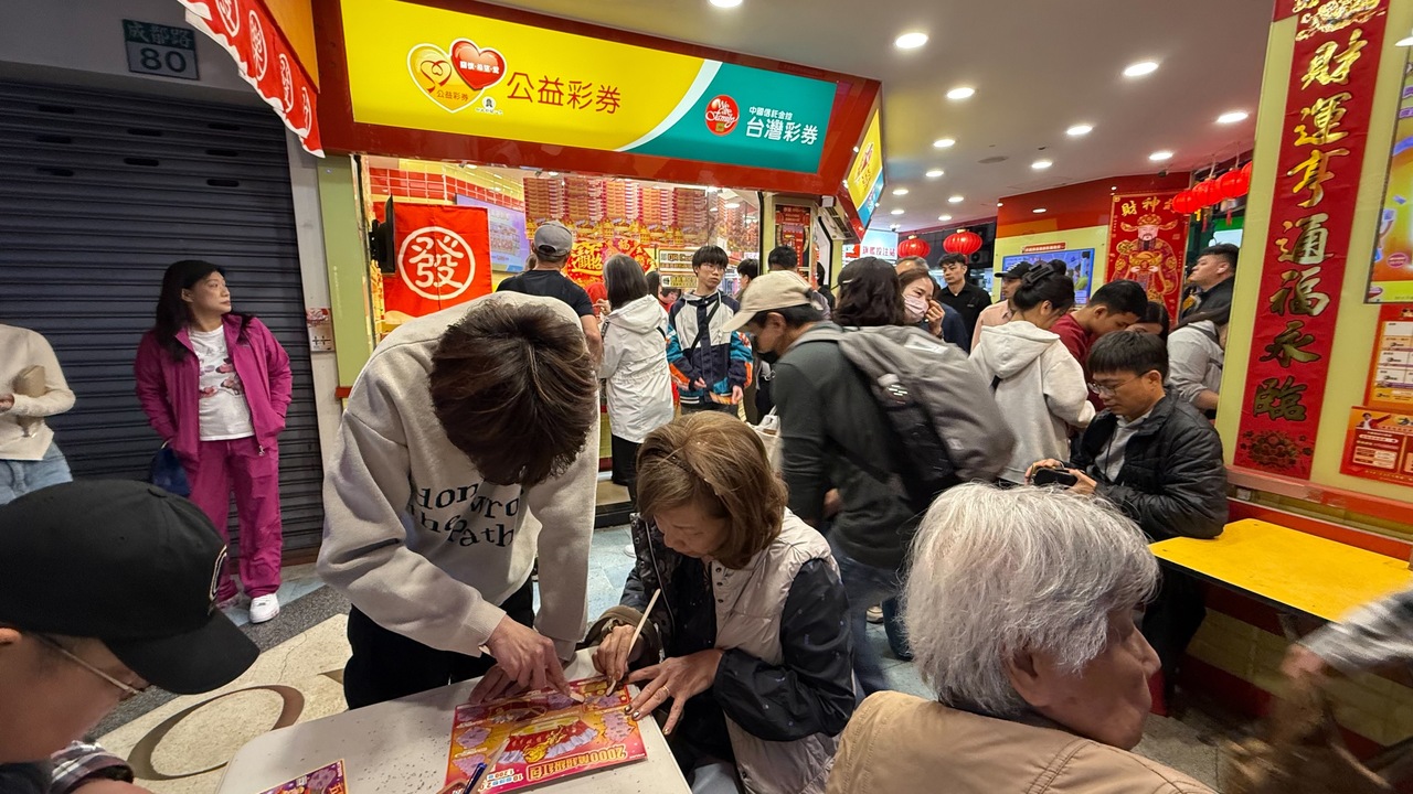 春節連假帶動彩券買氣,許多民眾除夕夜前往投注站試試手氣。記者葉信菉/攝影
