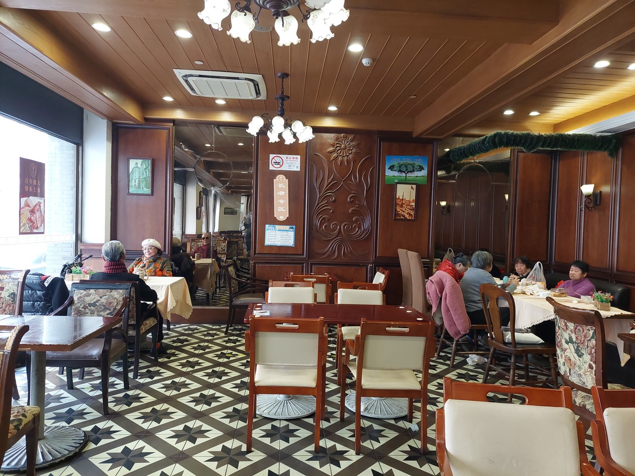 即使還沒有到吃飯時間,一早也會有許多「上海爺叔」和老太太們來這邊喝咖啡、聊天,他們甚至還有固定坐位。