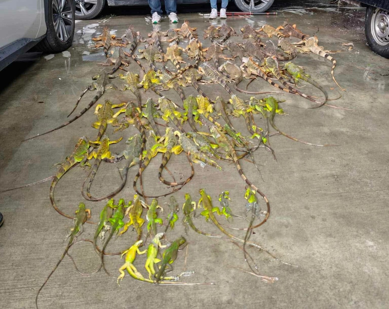 綠鬣蜥氾濫,屏東去年移除量逾13萬隻創當地新高,也居全國之冠。(屏東縣議員洪宗麒提供)中央社