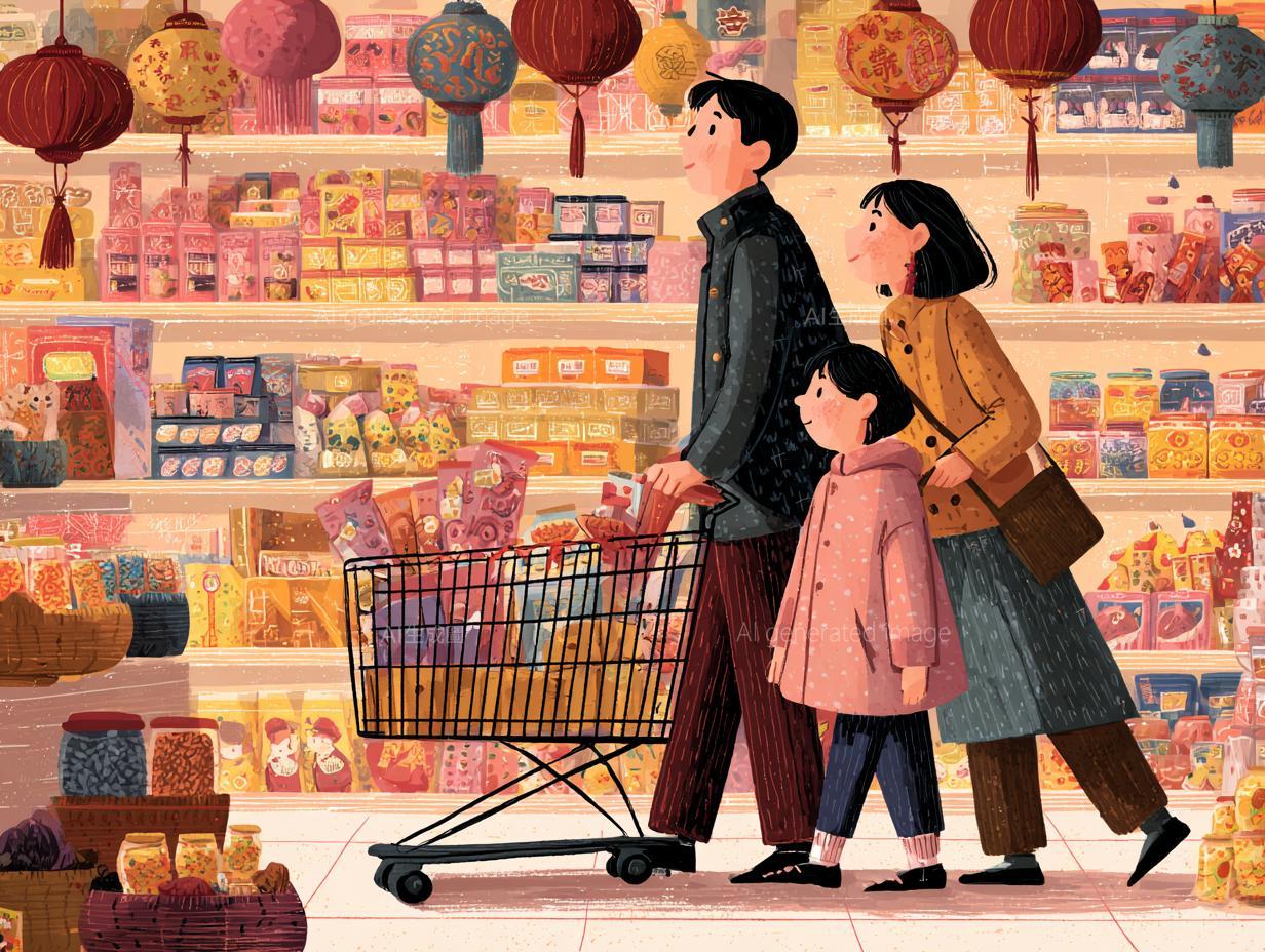 一名網友記得以前去大賣場都會播放新年應景歌曲,但近幾年都聽不到了。新年購物示意圖。 圖/AI生成