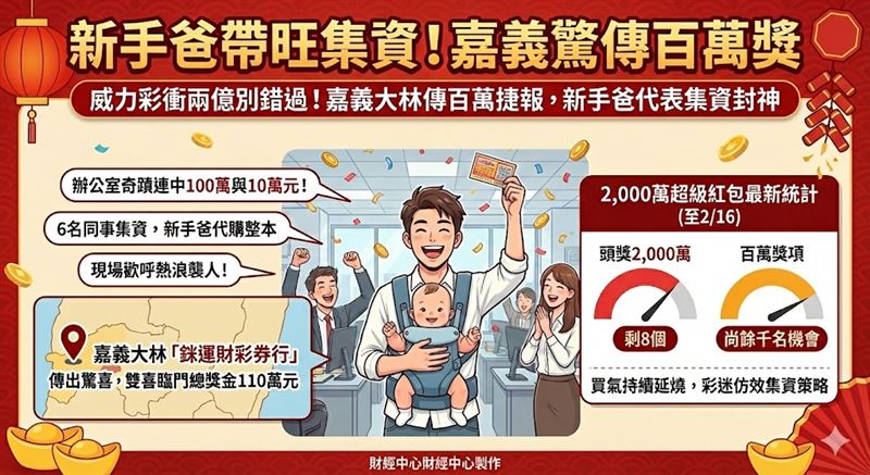 導覽目錄: 氣氛凝結竟是看錯行?新手爸代表購票立大功 頭獎剩8個!嘉義神手先搶下這一注