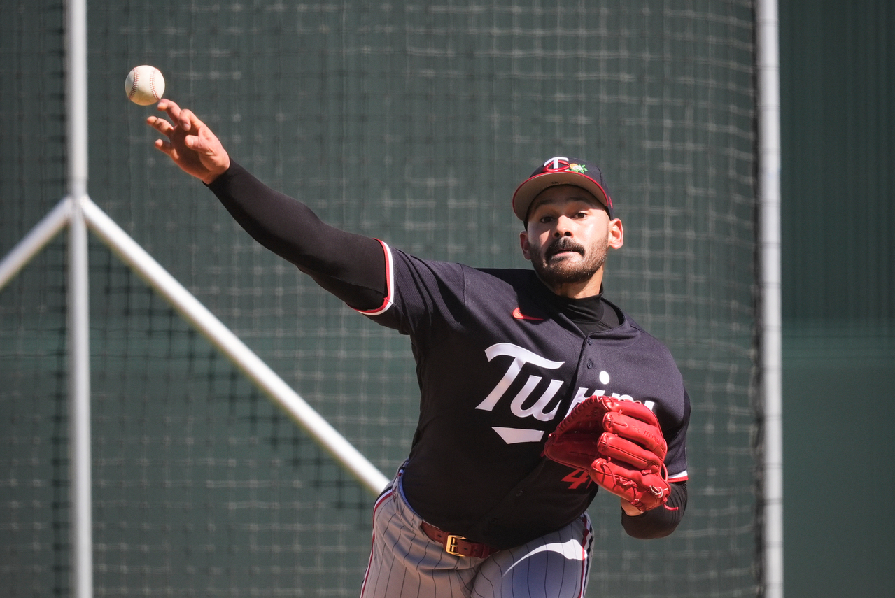 Minnesota Twins pitcher Pablo Lopez throws during a spring training baseball workout in Fort Myers, Fla., Monday, Feb. 16, 2026. (AP Photo/Gerald Herbert) 美國聯合通訊社