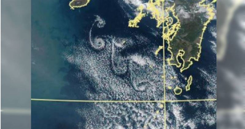 2026 年大年初三(19 日),前氣象局長鄭明典在社群平台上分享了一張驚豔的衛星雲圖,畫面中位於韓國濟州島的下風處,出現了一串排列整齊、宛如數字「666」或花瓣般的螺旋雲系。鄭明典以「漂亮又可愛」形容這難得的視覺奇觀,引發網友熱烈討論。然而,氣象專家提醒,這種被稱為「卡門渦列」的自然現象,在流體力學中曾是導致大型橋樑崩塌的隱形殺手。