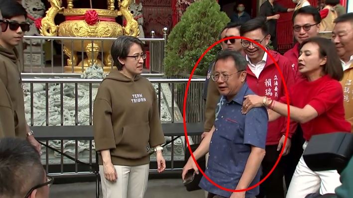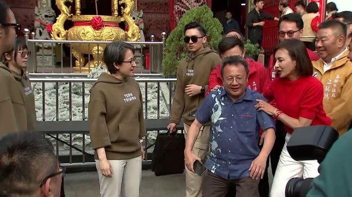 「鳳山代天府」主委蔡忠勇這時還拿起麥克風說「預祝我們蕭副總統步步高升,好不好?」民眾則大聲回應「 好。」並響起熱烈掌聲。