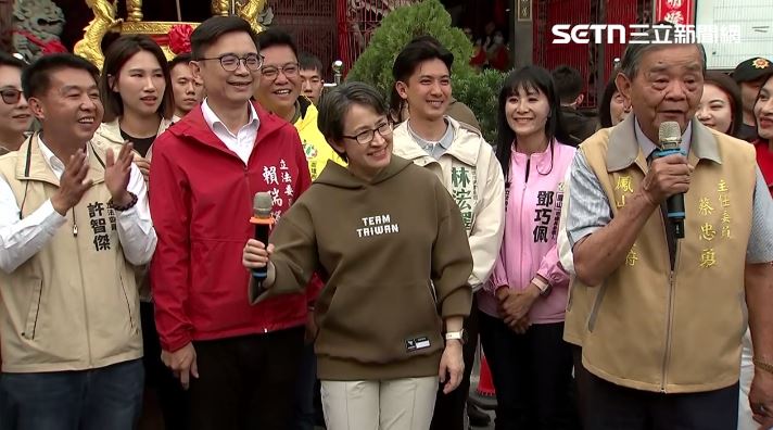 春節走春,總統賴清德、副總統蕭美琴分別到全台各地發福袋,副總統蕭美琴的國安隨扈服裝被人注意到,他們穿淺棕色「戰貓帽T」 意外爆紅,就連前總統蔡英文都羨慕。今(19)日大年初三蕭美琴也穿上同款帽T到各地發福袋與民眾互動,下午來到高雄「鳳山代天府」,在行程結束前應要求與高雄的民代分別合照,當民進黨立委、高雄市長參選人賴瑞隆提出要比「戰貓」姿勢時,蕭美琴先「喵~」的一聲比出貓的姿勢,超配合的。