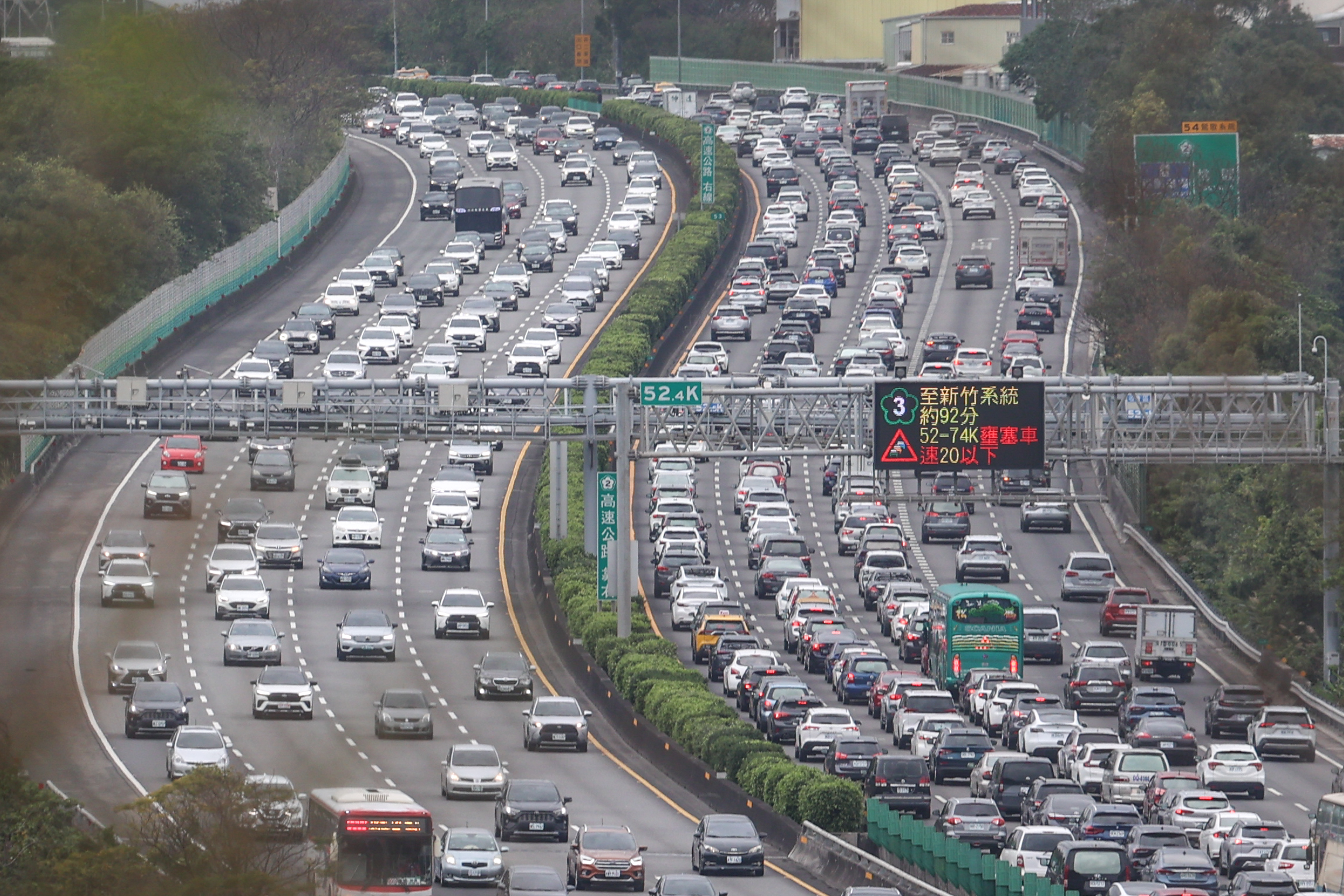 今天以北返車流為主,高公局預判重點壅塞路段為國1北向西螺-埔鹽系統、南屯-后里、苗栗-湖口;國3北向竹山-中興、草屯-霧峰、大山-香山、關西-大溪;國5北向宜蘭-坪林;國4西向潭子系統-豐勢;國6西向東草屯-霧峰系統;國10西向仁武-左營端等路段。