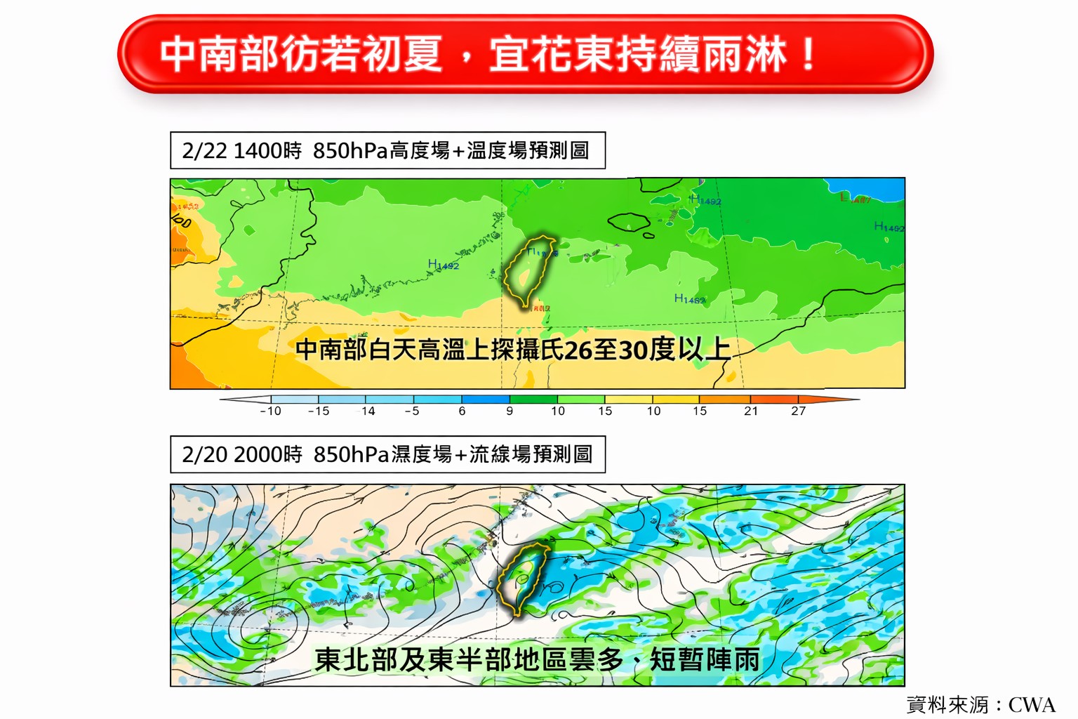 溫度方面,他說,東半部地區高溫可達25至28度,西半部地區白天高溫更在26至30度或以上,澎湖地區24至27度,金門及馬祖地區最高溫也分別在22至25及16至19度之間。