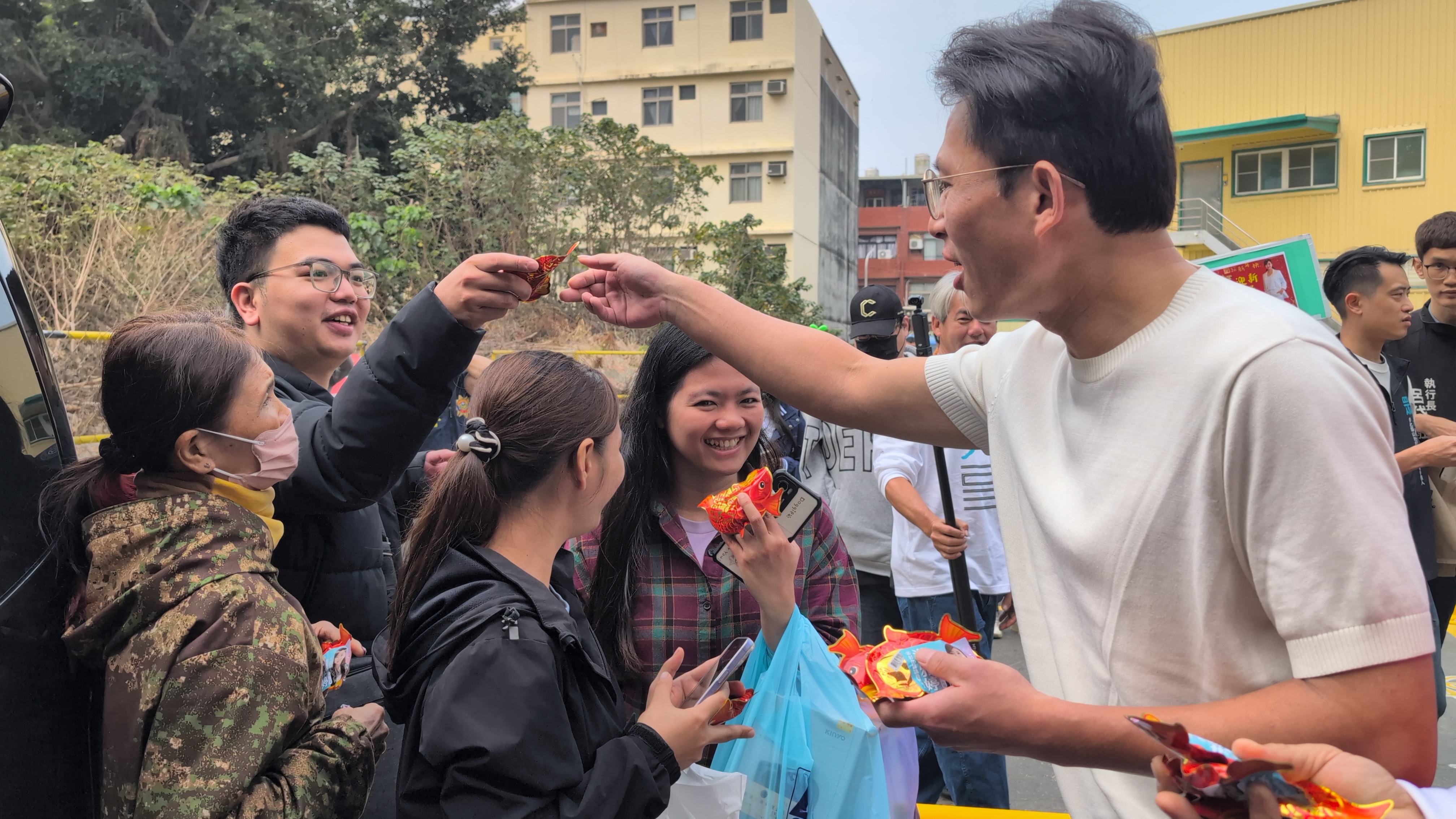 黃國昌今彰化走春,有很多支持者為他加油、索取簽名,大多是年輕人,也有一路尾隨高分貝嗆聲的歐吉桑,形成明顯對比。黃國昌接受訪談時被嗆聲,仍「不跳針」講完要表達的想法,民眾頗佩服他的高EQ。