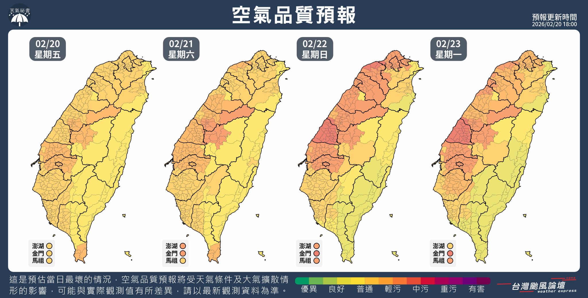 空氣品質預報。圖/取自「台灣颱風論壇|天氣特急」臉書粉專