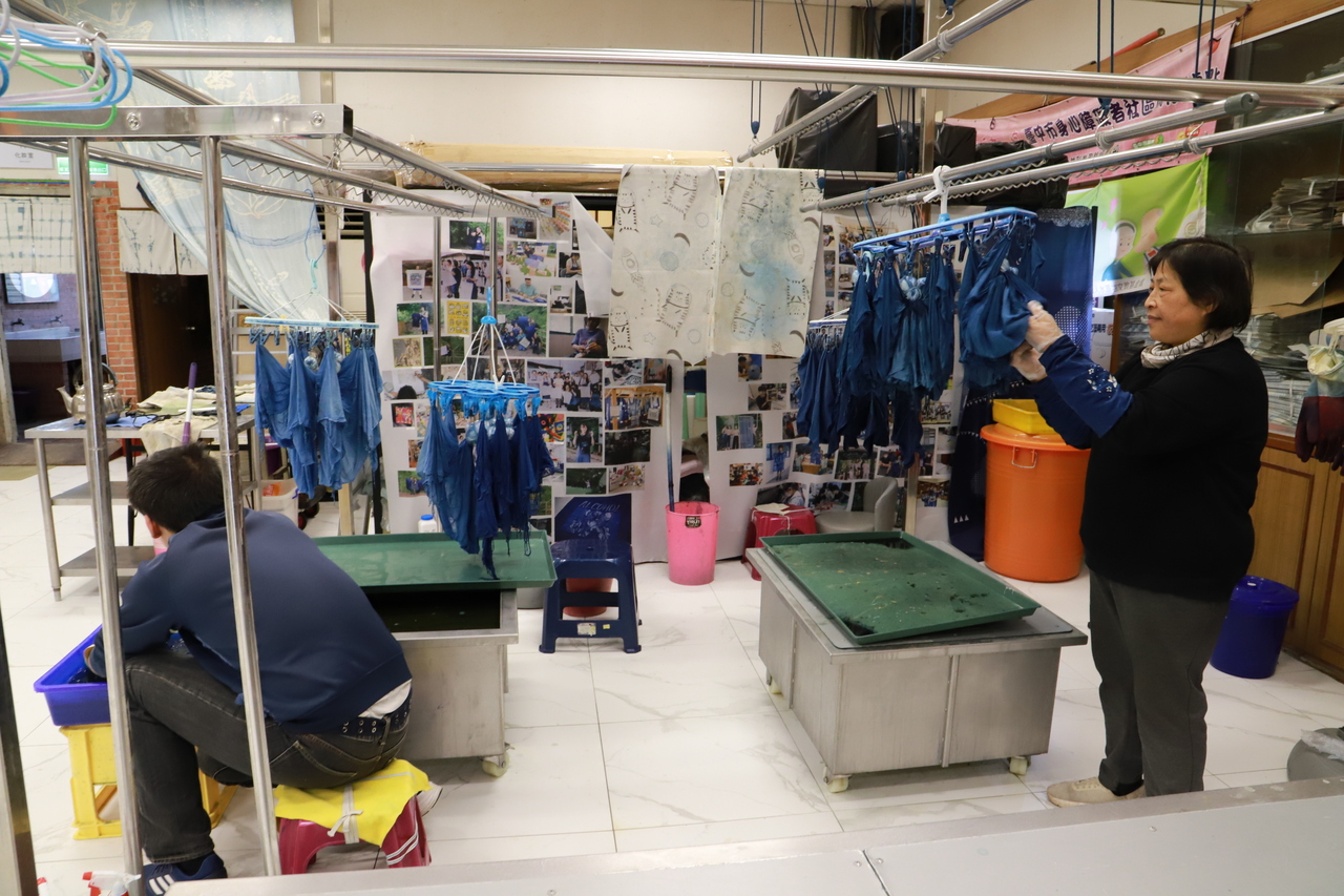 基地除有藍染常設展,介紹在地藍染原料「藍草」,從提取汁液、染布、創作過程及運用的各種商品,還設DIY教室,讓到訪遊客可做紀念品,展售地方農特產,肩負在地旅遊推廣任務。