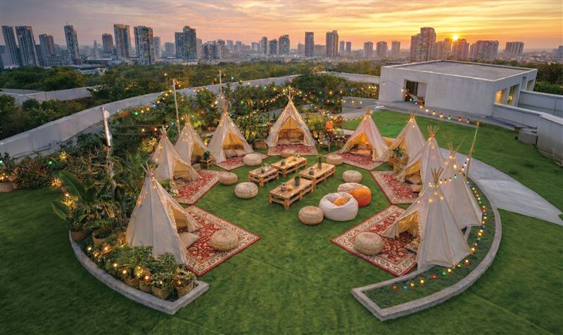 4. 6F Sky Park「琉光花園」結合餐廳與影城創造微醺氛圍,並連結至8F「Sky Camp天際營地」,首創城市中不過夜高空露營體驗場域