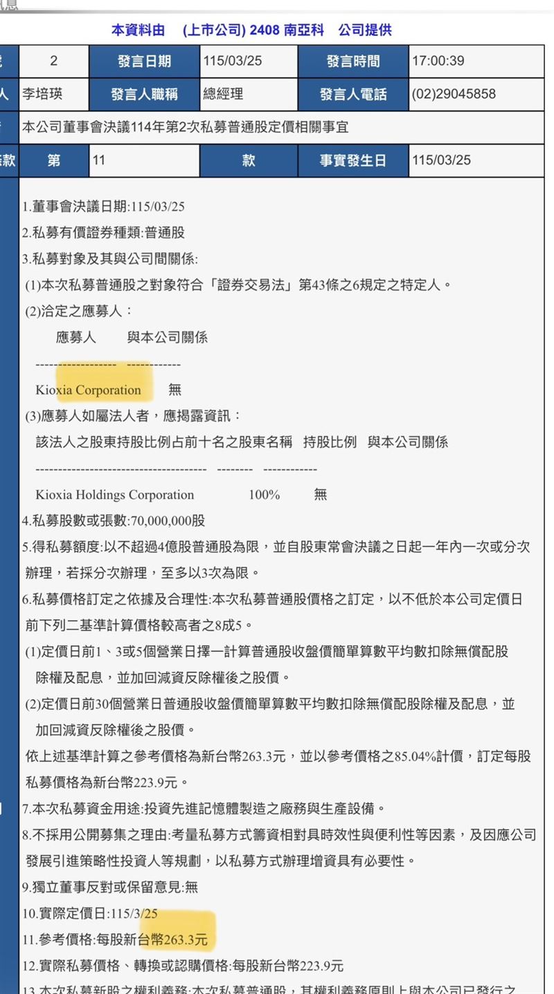 南亞科(2408)今(25)日下午發出重訊,私募定價223.9元引進SanDisk、鎧俠。素有半導體先知、鈞弘資本執行長沈萬鈞在臉書「萬鈞法人視野」發文分析,南亞科這次私募案,真正要看的問題不是誰入股,而是這幾家自己都有生產,為什麼還要拿錢投南亞科?沈萬鈞覺得答案就在產能配置。