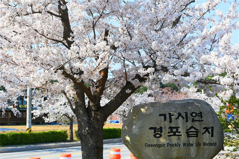 江原道是近年來相當受國內外旅客喜愛的旅遊地區,其中又以春川、束草、江陵最有人氣,櫻花花期屬於韓國櫻花季尾聲,大部份落在4月上旬至中旬。江陵鏡浦湖因如鏡子般清澈而得名,每逢春日之時,會舉辦江原道最盛大的櫻花慶典「鏡浦臺櫻花節」;束草的永郎湖以景色優美著稱,春天時,一整圈的櫻花樹將包圍湖畔,還能從這遠眺到雪嶽山山景。