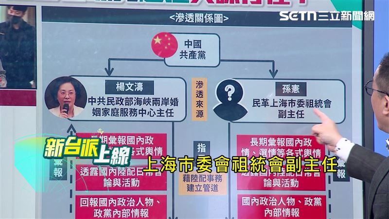 資深媒體人鍾年晃分析,徐春鶯這個案例應該是共諜滲透台灣最經典的案例,應該也是反滲透法三讀通過施行之後,抓到證據最確鑿的,因為她的對口是中國民政部,民政部是中國的中央級的單位,還不是什麼外圍周邊側翼,就是一個中央級單位。鍾年晃表示,她的對口其實有兩個,民政部海峽兩岸婚姻家庭服務中心主任楊文濤 ,還有一個叫民革上海市委會祖統會副主任孫憲,這兩個都是政府單位。