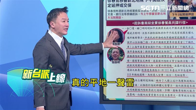 曾擔任民眾黨新住民委員會主委的徐春鶯,因涉及《反滲透法》、《銀行法》、《詐欺》等罪名遭起訴,25日被法院裁定羈押3個月並禁止接見通信,資深媒體人鍾年晃在三立談話性節目《新台派上線》中,分析徐春鶯的行為。