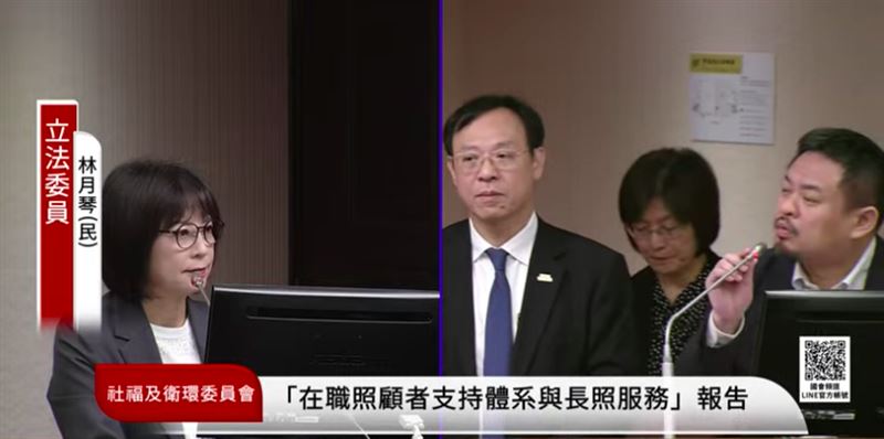 林月琴質詢時聚焦在職照顧者支持體系與長照3.0服務銜接問題,指出台灣家庭普遍進入「夾心世代」,勞工往往同時肩負育兒與照顧高齡父母責任,但現行制度僅有育嬰留停等措施,長照端卻缺乏相對應假別,使照顧壓力集中於個人身上。