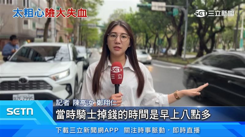 記者陳亭汝、鄭翔仁:「事發地點就在台大校園門口的這條辛亥路二段上,當時騎士掉錢的時間是早上八點多,正值上班尖峰時間。」