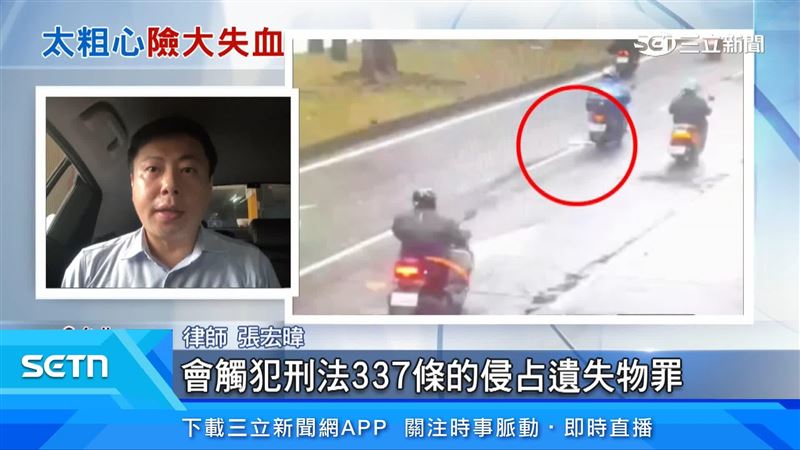 律師張宏暐:「撿到他人遺失物而未歸還會觸犯刑法337條的侵占遺失物罪。」