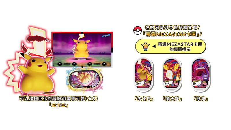 玩家看過來!由 TAKARA TOMY 旗下玩具廠商 T-ARTS Company, Ltd. 及遊戲製造廠商 Marvelous Inc. 共同開發,以及世雅育樂股份有限公司(SEGA Taiwan Ltd.)代理營運的兒童卡片遊戲機《Pokémon MEZASTAR(寶可夢明耀之星)》將於4月2日正式推出全新「銀河系列」,並同步展開「銀河 1 彈」。