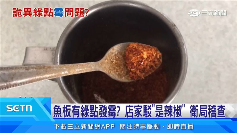 強調魚板並沒問題,業者否認發霉。店內的辣椒粉實際舀起來檢視,看來紅紅黃黃,沒有綠色顆粒,到底問題出在哪?
