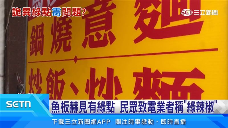 民眾點一碗魚板烏龍吃到一半覺得魚板有點不一樣,其中一片有著綠色圓點有白有粉還有黃的魚板,綠色點點很明顯是發霉嗎?民眾指控,打電話回去問老闆,對方回應是辣椒。