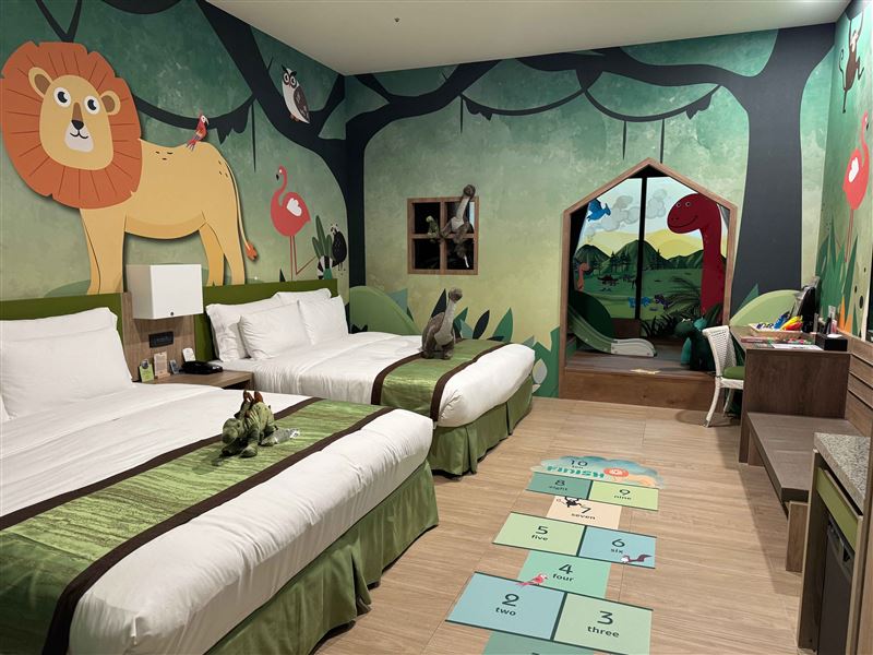 福隆福容十周年住房專案,雙人入住三天兩夜不僅享優惠價6999元起,還可升等海景房型,原價近3萬元直接下殺至約23折,自4/1至4/10限時開賣,入住期限至6/30止,每日限量一間,主打「搶到就是賺到」的高話題性。未能搶到優惠的遊客也免煩惱,自2025年登場的奇幻冒險島親子主題房,以山林與海洋為設計概念,打造沉浸式住宿空間,房內結合海洋生物與恐龍元素,搭配夜間星空投影,營造如夢似幻的住宿體驗,目前推出2大1小7999元起的優惠方案,除早餐外更包含宵夜炸雞桶,成為親子客群熱門選擇。
