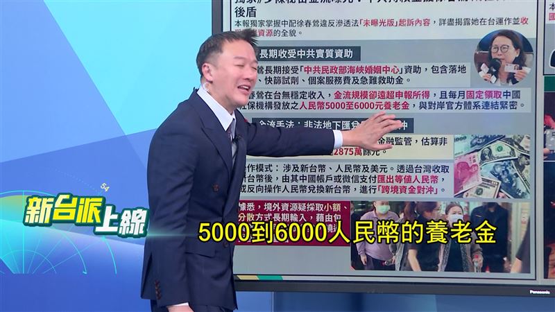 徐春鶯案還有一個細節引發高度關注:她每月固定向中國社保機構領取5,000至6,000人民幣的養老金,吳崑玉指出這個等級的退休金對應的是「正科級幹部」,在兩岸交流場合絕非小角色,幾乎可以確定她曾在中共的黨職或公職系統中有過正式任職,而且直到現在中共仍持續給付,等同於默認其身分。